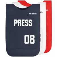 Our sports caddy press bib vests start with our waterproof crisp white fabric and are printed with any design edge to edge including any close pantone colour, and the opportunity to add any logos or designs within the template.
